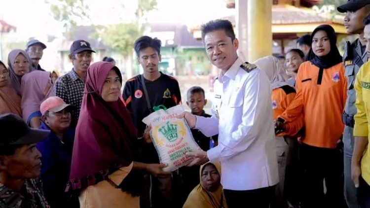 Bagikan Sembako Warga Terdampak Banjir, Bupati Rohil Ajak Masyarakat Sukseskan Pemilu
