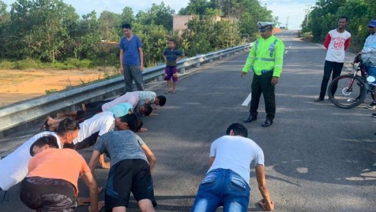 Berkendara Tanpa Tahu Aturan, Belasan Imigran di Bintan Kena Hukum Push-up