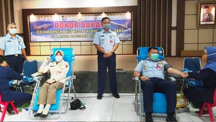 Komandan Lanud Roesmin Nurjadin Marsma TNI Ronny Irianto Moningka, S.T.,M.M., mengatakan, dalam rangka menindak lanjuti surat dari Ketua PMI Pusat kepada Kasau tentang bantuan pengerahan donor darah, dan bersempena dengan HUT TNI AU ke-74, maka sebagai insan TNI AU yang profesional, militan dan inovatif tentunya harus mampu berkontribusi positif dalam kepentingan bersama, terutama membantu PMI agar tersedianya stok darah yang memadai, sewaktu-waktu sangat dibutuhkan bisa didistribusikan kepada masyarakat yang membutuhkan.