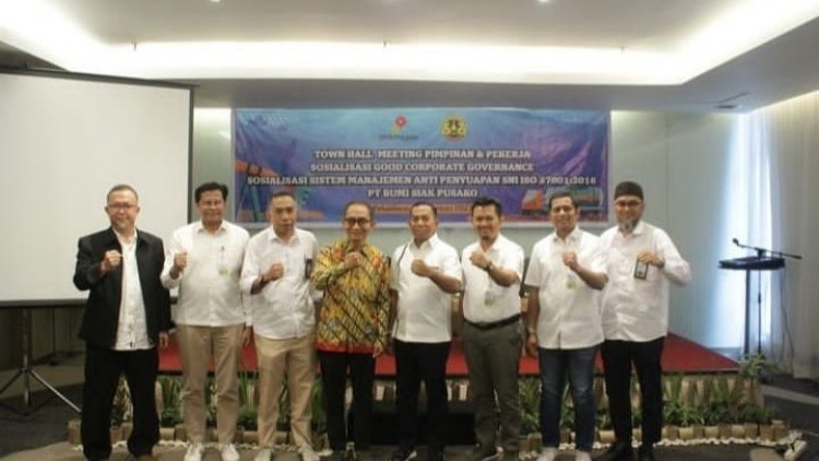 KANALSUMATERA.com - PEKANBARU - Fungsi Compliance menggelar Sosialisasi Good Corporate Governance (GCG) dan Sistem Manajemen Anti Penyuapan (SMAP) SNI ISO 37001:2016 yang diikuti oleh seluruh pegawai PT Bumi Siak Pusako (BSP) di wilayah operasinya. Kegiatan tersebut digelar secara hybrid di Hotel Premiere, Pekanbaru, Selasa (28/2/2023).