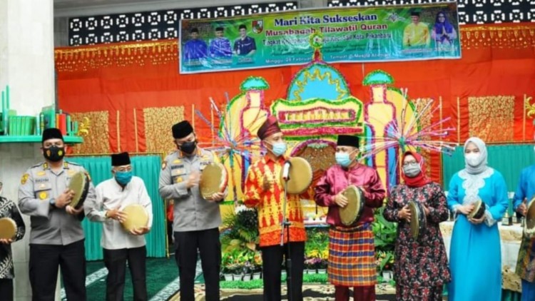 KANALSUMATERA.com - Pekanbaru - Wakil Walikota Pekanbaru H. Ayat Cahyadi, S.Si membuka Musabaqah Tilawatil Quran (MTQ) Tingkat Kelurahan Cinta Raja Kecamatan Sail di Masjid Paripurna Al-Iman Jln. Letkol Hasan Basri, Minggu (28/02/21). Turut hadir pada saat pembukaan itu Kapolresta Pekanbaru Kombes Pol H. Nandang Mu'min Wijaya., S.I.K.,M.H, Kabag Watpers Ro Polda Riau AKBP Hasyim SIK, MH, Camat Sail Fachruddin Panggabean S.Sos MA.p.