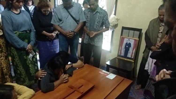 Jenazah Iglesias disimpan dalam peti. Suasana haru langsung terasa ketika peti dibawa masuk ke dalam rumah. Keluarga memulai dengan doa bersama.