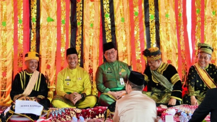 Kedatangan Bupati dan Wakil Bupati Kampar bersama Sekretaris Daerah Provinsi Riau Syahrial Abdi disambut secara adat oleh para ninik mamak melalui tradisi basiacuong, sebuah prosesi penyambutan khas masyarakat Kampar yang mengandung makna penghormatan, doa, dan rasa syukur.