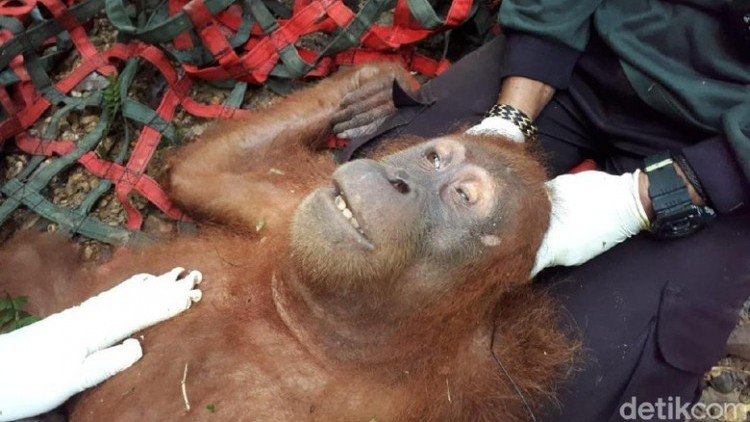 Petugas kemudian memeriksa kondisi Orang Utan dan menemukan luka bekas tembakan. Selain itu, sebelah matanya juga sudah tidak dapat melihat.