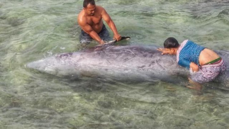 "Menurut nelayan setempat paus sering tampak di perairan ini. Tapi yang terdampar baru kali ini," kata Linda.