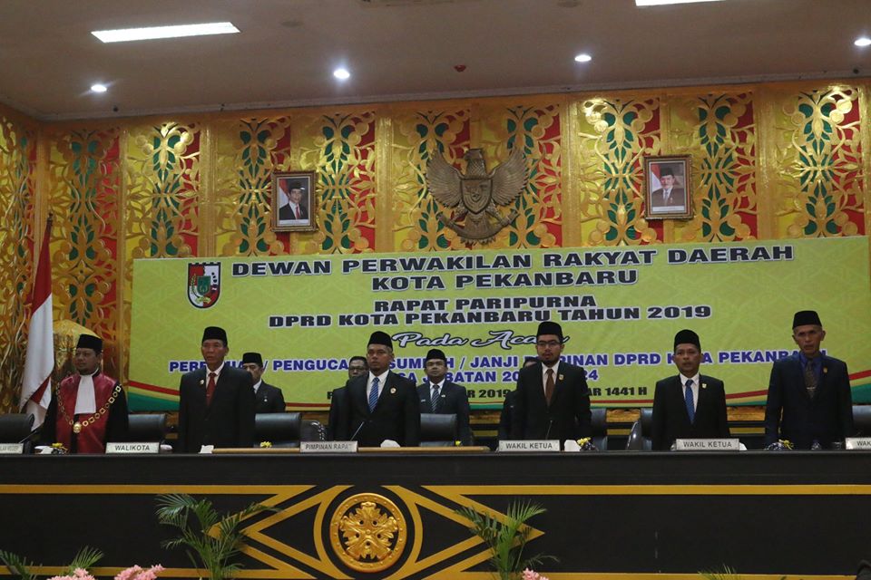 Pelantikan dilaksanakan berdasarkan surat keputusan (SK) Nomor KPTS.1072/IX/2019 tentang pengangkatan pimpinan DPRD Kota pekanbaru masa jabatan 2019-2024 yang telah ditandatangani oleh Gubernur Riau. Dengan dilantiknya para pimpinan DPRD Kota Pekanbaru maka lengkaplah unsur penyelenggaraan Pemerintahan Daerah Kota Pekanbaru sesuai dengan kedudukan dan fungsinya yang telah diamanahkan oleh Konstitusi.