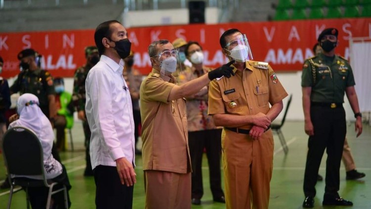 KANALSUMATERA.com - Pekanbaru- Presiden Republik Indonesia Joko Widodo melakukan kunjungan kerja ke Provinsi Riau. Didampingi Gubernur Riau Syamsuar dan Walikota Pekanbaru Dr. H. Firdaus, S.T, M.T, Presiden juga meninjau vaksinasi massal, Rabu (19/5/2021).