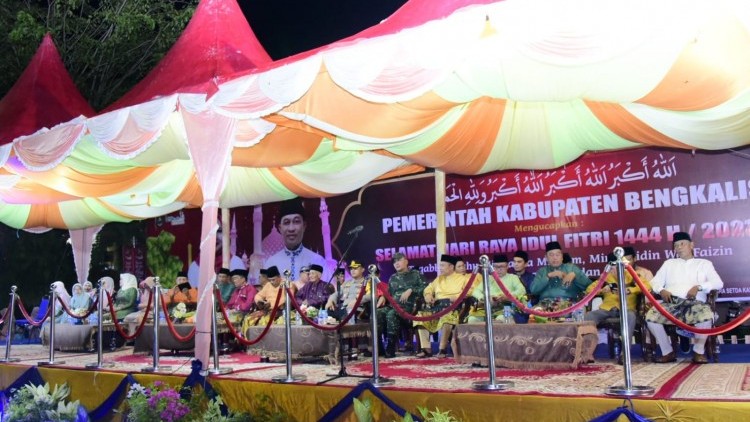 “Mari kita rayakan hari kemenangan ini dengan merefleksikan serta mentransformasikan seluruh nilai-nilai yang terkandung selama Ramadhan dalam kehidupan berkeluarga, bermasyarakat, berbangsa dan bernegara, dengan menyatukan hati, jiwa, pikiran serta tindakan kita untuk terus tumbuh dan tangguh dengan memperkuat silaturrahmi dalam membangun Kabupaten Bengkalis bermarwah, maju dan sejahtera,”ujar Bagus Santoso kala membacakan sambutan Bupati Kasmarni.
