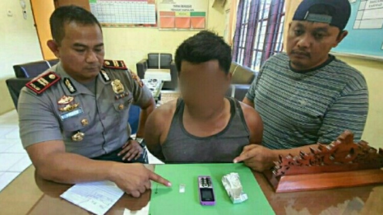 Barang bukti yang diamankan berupa satu paket sabu seberat 0,25 gram, satu unit sepeda motor Honda Beat warna biru lutih BM 4632 IF dan Hp.