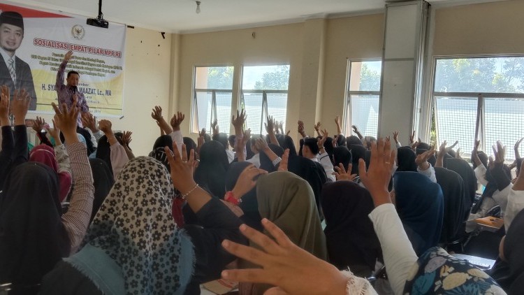 Salah seorang anggota MPR RI, Syahrul Aidi Maazat yang saat ini di Komisi V DPR RI, turut melakukan sosialisasi empat pilar tersebut. Kali ini dia menyasar kelompok mahasiswa, mahasiswa baru Universitas Pahlawan, Bangkinang, Senin (25/11/2019).