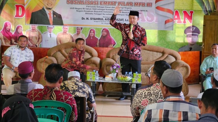 Kampar - Dr. H. Syahrul Aidi Maazat Lc MA, Anggota DPR RI/MPR RI Dapil Riau 2, menggelar sosialisasi empat pilar bernegara. Empat pilar bernegara merupakan pondasi dasar kehidupan berbangsa dan bernegara Negara Kesatuan Republik Indonesia (NKRI).