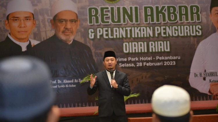 KANALSUMATERA.com - PEKANBARU - Anggota DPR RI Dapil Riau 2, Dr. H. Syahrul Aidi Maazat Lc MA, resmi dilantik sebagai Ketua Organisasi Internasional Alumni Al Azhar (OIAA) Indonesia Wilayah Riau, Selasa (28/2/2023). Pelantikan tersebut dilaksanakan di Hotel Prime Park Pekanbaru, dan diselingi dengan reuni akbar alumni Al Azhar Riau.
