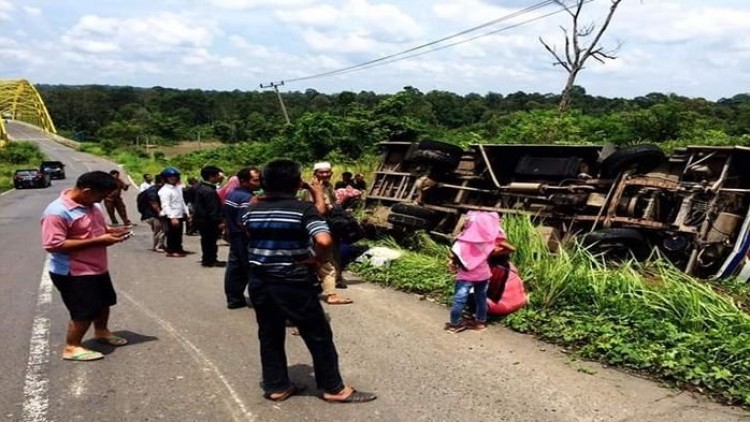 Tragis, Bus yang Membawa Keluarga Pengantin Terguling di Jembatan Kuning
