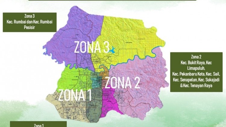 Sedangkan Zona 3 meliputi Kecamatan Rumbai dan Kecamatan Rumbai Pesisir.